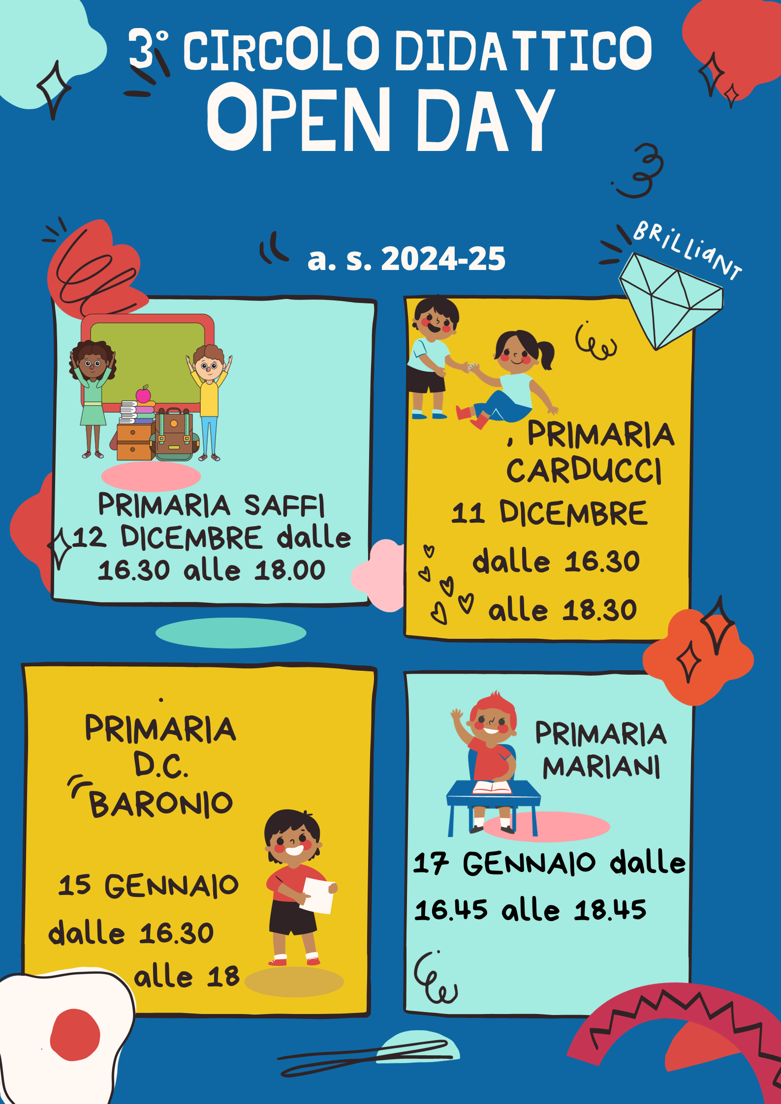 Si allega locandina con gli appuntamenti per gli open day nei plessi del nostro Circolo